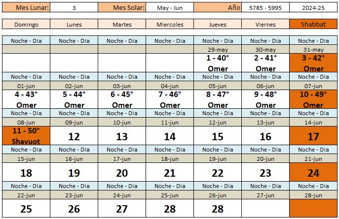 el 28 May 2025 por Enzo Dominguez Sin categoría Nuevo mes desde 29/5/25 Aqui les dejo el calendario hebreo para este mes 3°/25 en curso