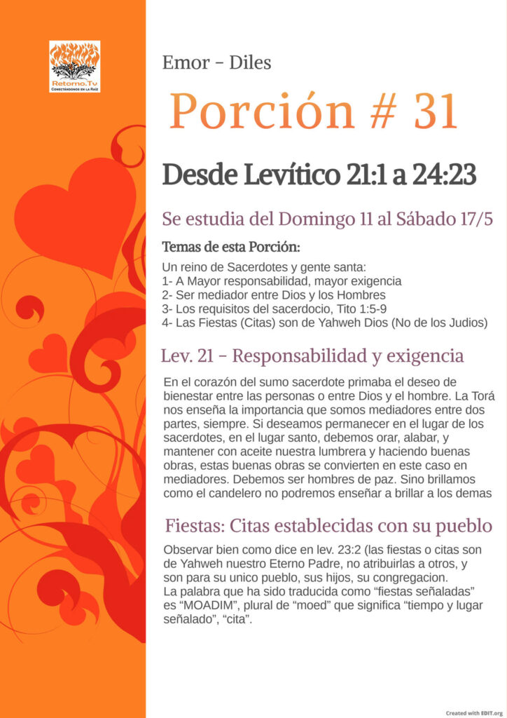 el 11 May 2025 por Enzo Dominguez Sin categoría Porcion 31 (Parasha) Porcion correspondiente a esta semana, del 11/5 al 17/5.
