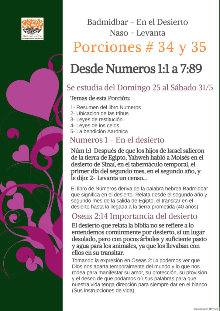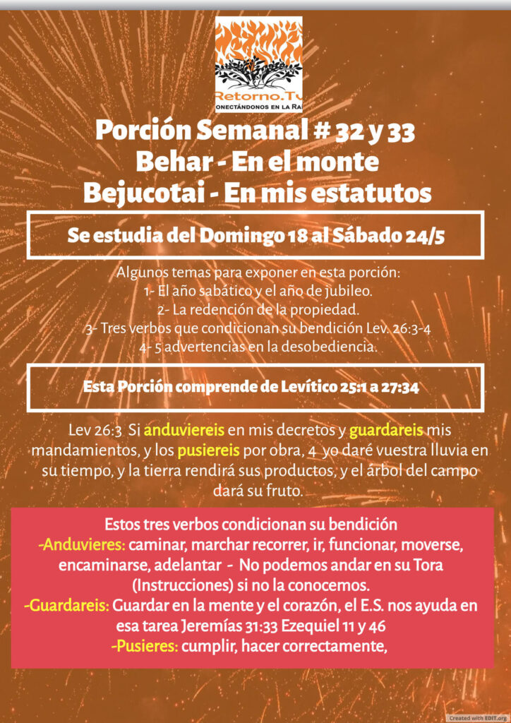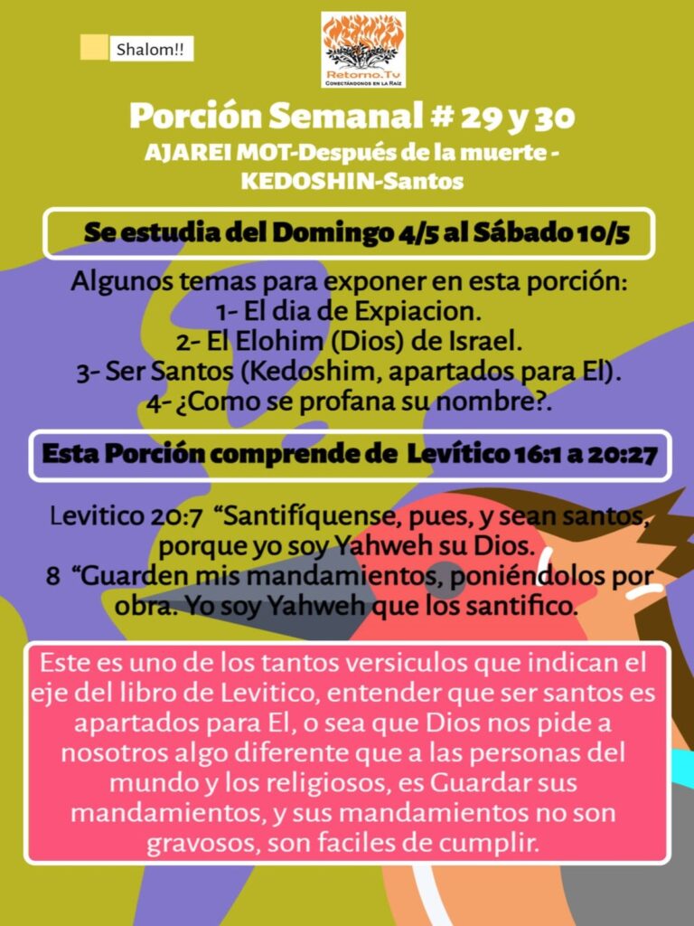 el 25 May 2025 por Enzo Dominguez Sin categoría Porciones 34 y 35 (Parashot) Porcion correspondiente a esta semana, del 24/5 al 31/5.
